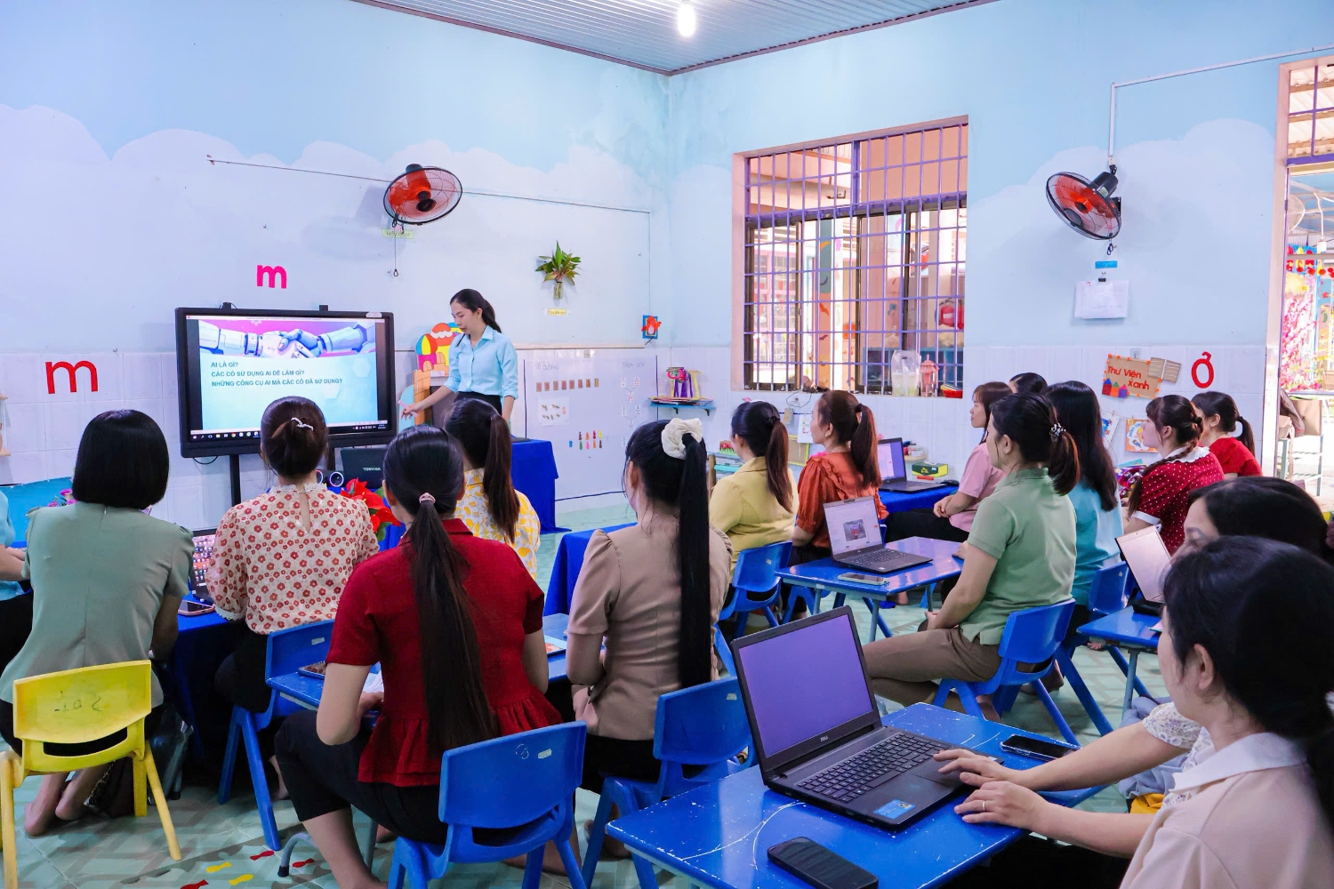 Điểm nổi bật của buổi bồi dưỡng là các minh họa sinh động về việc sử dụng các phần mềm, hình ảnh, video và bài giảng điện tử trong tổ chức hoạt động học cho trẻ. Việc ứng dụng công nghệ số giúp bài học trở nên trực quan, hấp dẫn hơn, từ đó kích thích sự hứng thú và khả năng tiếp thu của trẻ. Đồng thời, giáo viên cũng có thêm nhiều công cụ hỗ trợ để sáng tạo trong phương pháp giảng dạy.